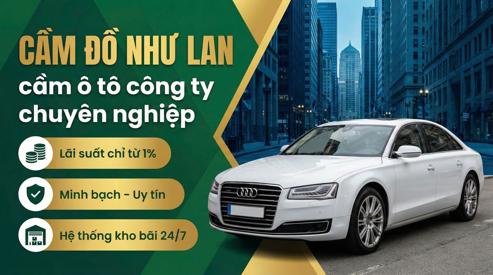 Trong tình hình thị trường gần đây, cầm cố ô tô đang vay ngân hàng đã trở thành một giải pháp quen thuộc với người kinh doanh, người đầu tư và cả người cần vốn xoay vòng ngắn hạn, để trở nên linh hoạt trong giải pháp giải quyết tài chính thì bên cạnh mô hình cầm cố ô tô đang vay ngân hàng dịch vụ Cầm đồ Như Lan còn nhận cầm cố ô tô công ty. Đây được xem là một dịch vụ cầm cố phù hợp bối cảnh các doanh nghiệp nhỏ và vừa tại khu vực Đồng bằng sông Cửu Long khi bạn đang trong trường hợp gặp khó khăn trong việc tiếp cận các nguồn vốn vay tín chấp truyền thống.